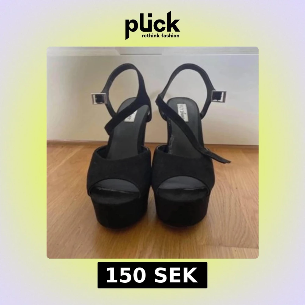 Storlek: 39 Klackarna är ca 13/14cm höga. Använda som man ser på bilderna. Har flera skavanker. Pris går alltid att diskuteras, snabbast/bäst bud får varan. Djur fanns i hemmet! Finns på fler hemsidor!