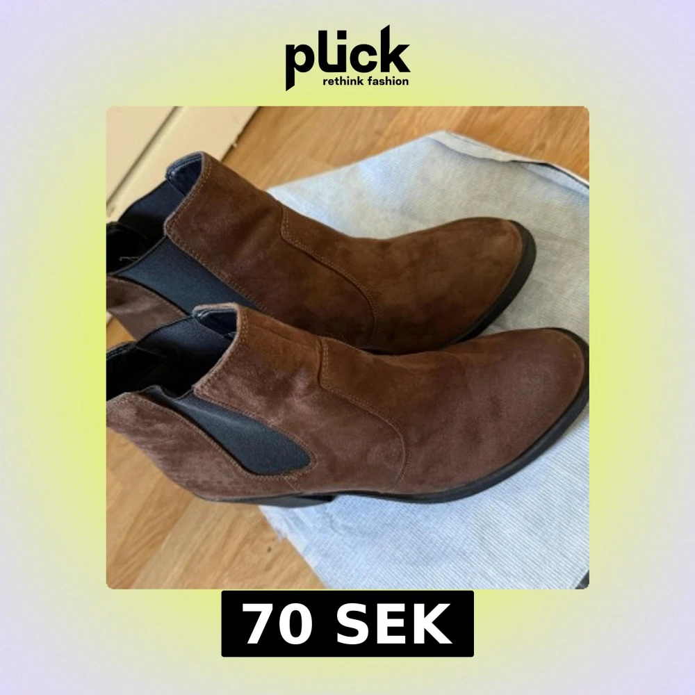 Snygga bruna chelsea boots i mjuk mocka med bred resår på sidorna och stabil klack. Rund tå och svart sula ger en clean look. Perfekta för dig som gillar stilrena boots med lite höjd. Passar till både jeans och kjol.