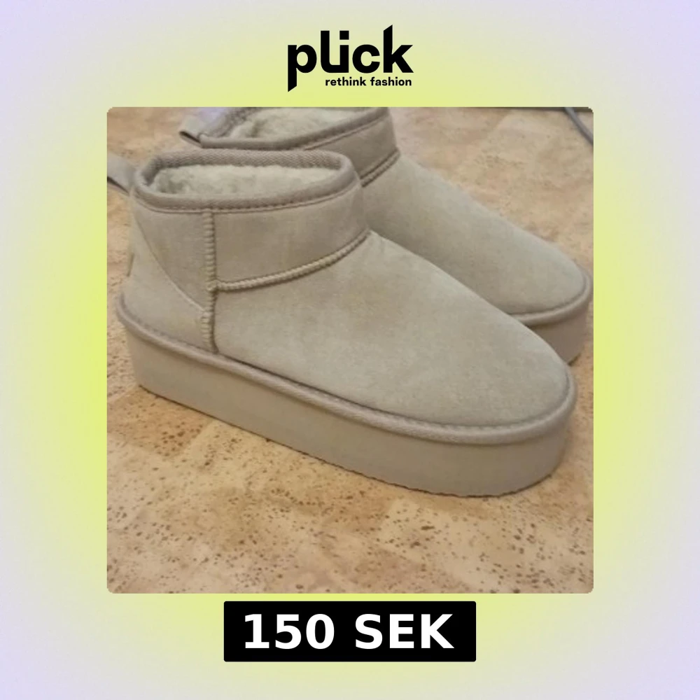 Säljer ett par beige boots med plattformsula och rund tå. Skorna är fodrade med mjukt foder och har ett yttre i mocka. Perfekta för kalla dagar och ger en trendig look med sin chunky sula och neutrala färg.