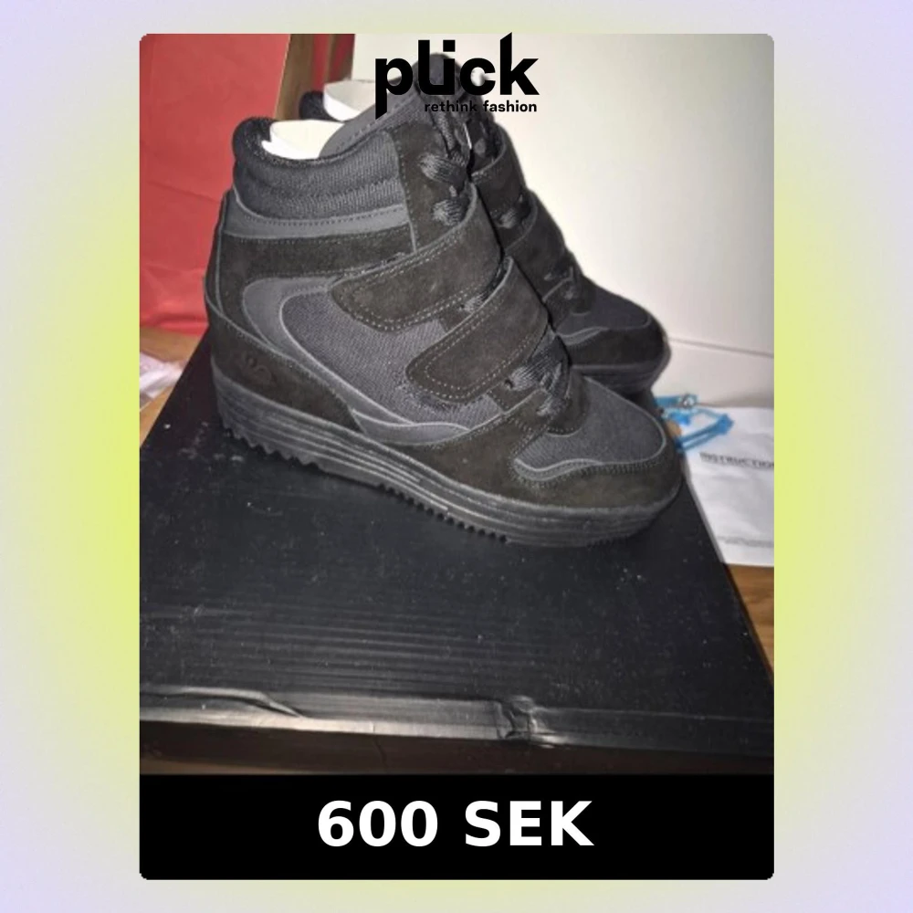 Säljer ett par svarta sneakers från Duffy i storlek 39. Skorna har en cool design med både snörning och kardborreband, samt detaljer i mocka och textil. Tjock sula och högre skaft ger en sportig vibe. Perfekta för dig som gillar streetstyle. Helt nya.