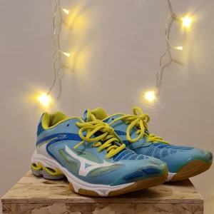 Sparsamt använda inneskor med ljus sula från Fast As Lightening 🌟🚀 Fin turkos förg med gröna detaljer. Det finns inga hål eller slitnader, men vanligt slitage i form av färgförändringar 💕 De har använts till volleyboll, träning, gym och idrott på skolan. Har dock växt ur dem så används inte längre 🤗