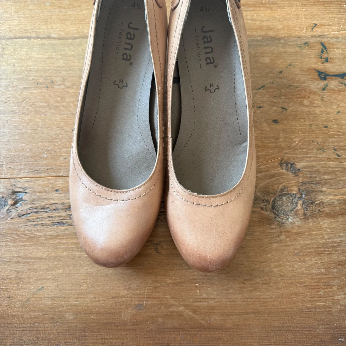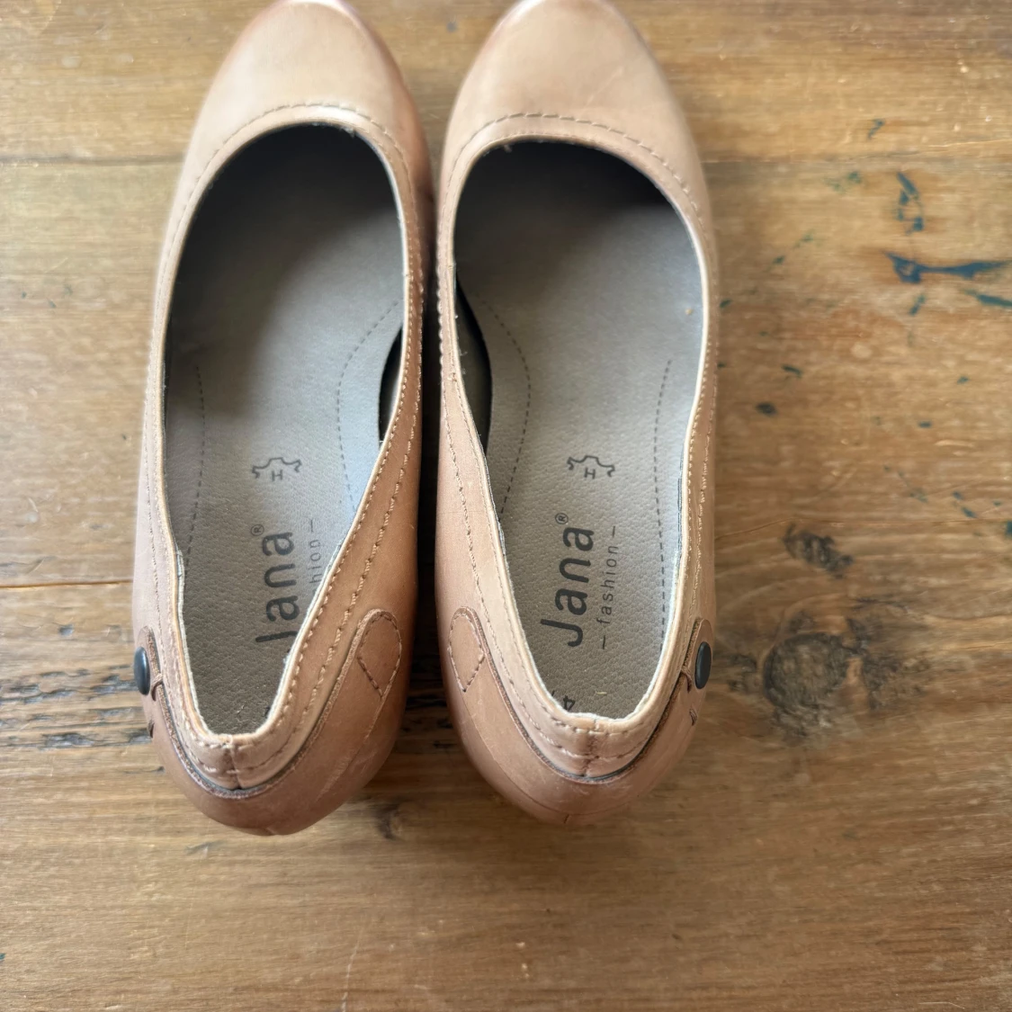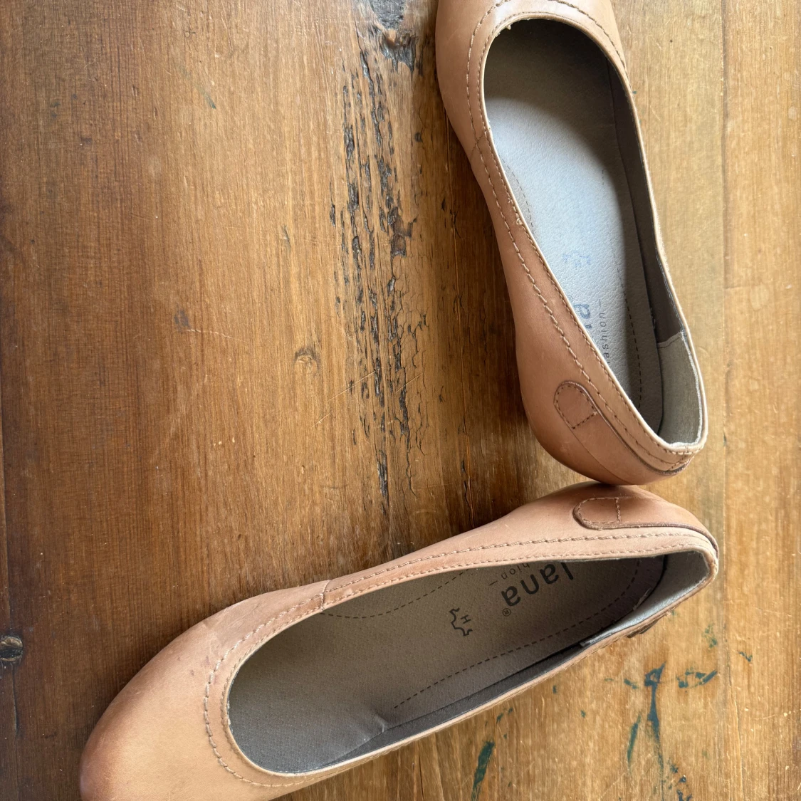 Snygga ballerinaskor från Jana i beige med rund tå och diskret söm längs kanten. Skorna har en enkel och stilren design med liten knappdetalj på sidan. Perfekta för dig som gillar klassisk och clean stil.