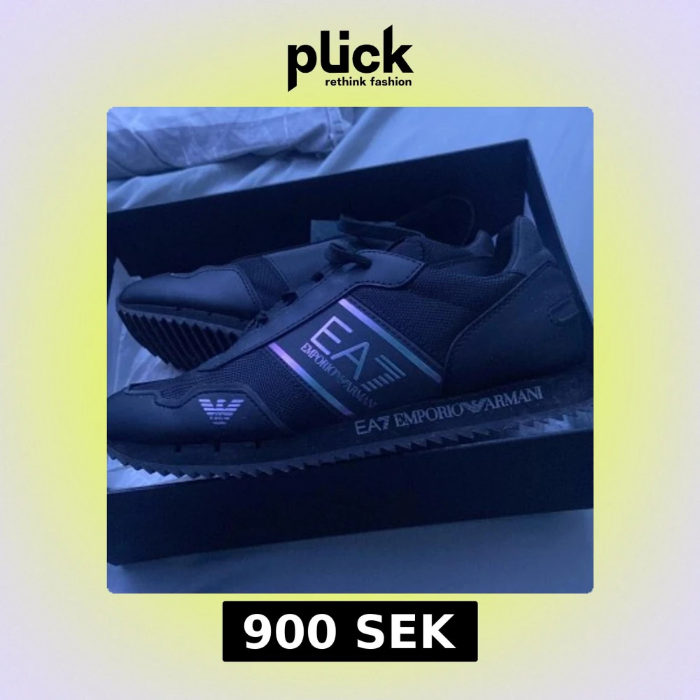 Snygga svarta sneakers i storlek 40 från Emporio Armani med EA7-logga på sidan. Dom är i mycket bra skick och har haft användning 2-3 gånger, de är nästan oanvända . Hör av dig om du är intresserad! Lådan följer med!