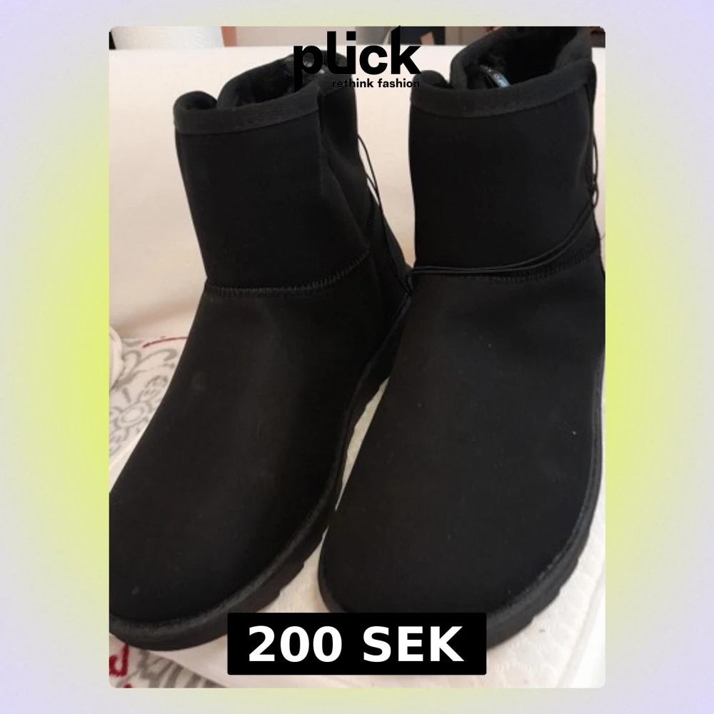 Säljer ett par svarta boots i mockaimitation med grov sula och rund tå. Skorna har en stilren design och passar perfekt till höst och vinter. Snygga att matcha med både jeans och kjol. Storlek 40, innermått 26,2 cm.