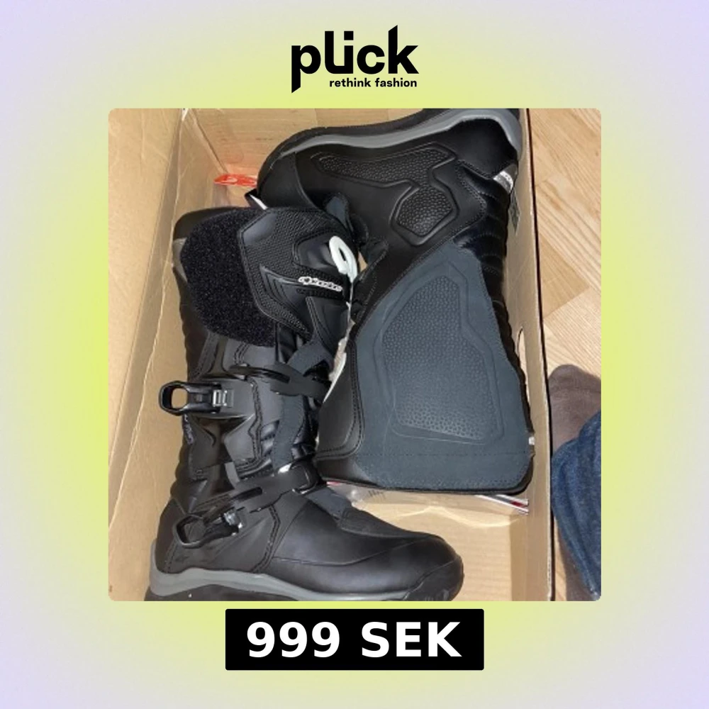 Säljer ett par svarta alpinestars Adventure kängor med högt skaft och spännen. Skorna har robust design, vadderad insida och är perfekta för utomhusaktiviteter. Tillverkade i syntetmaterial och har en platt sula för extra stabilitet.