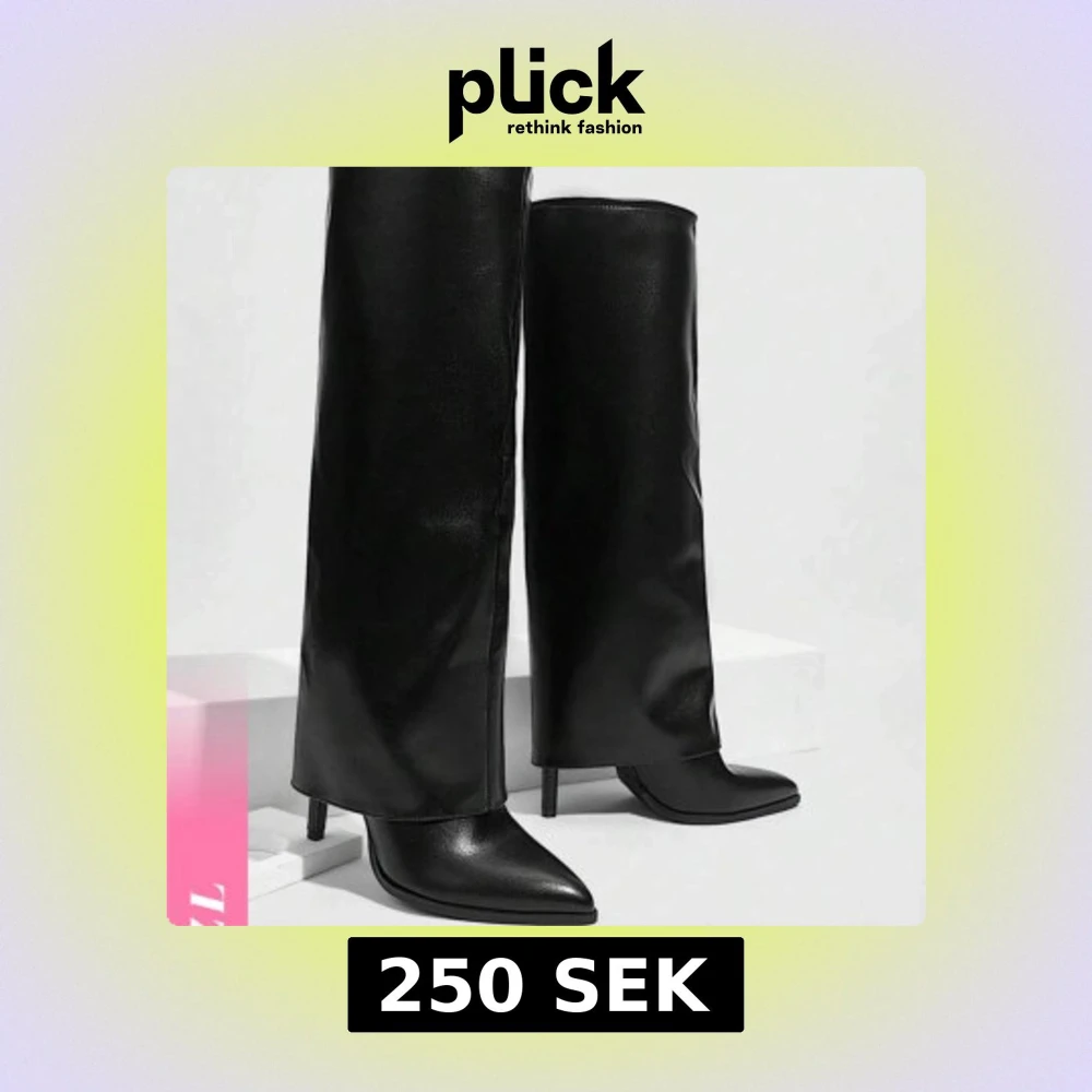 Snygga svarta stövlar i skinn med spetsig tå och klack. Perfekta för en stilren look. Ej använda, liten till storlek så skulle säga att dessa skor passar dig som har 38-39 i skostorlek