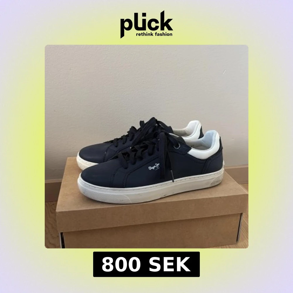 Snygga mörkblå sneakers från Pepe Jeans med vita detaljer och bruna gummisulor. Skorna har snörning, rund tå och texten '1973' i guld på hälen. Pepe Jeans-logga på sidan och undersidan. Perfekt för dig som gillar stilrena och klassiska sneakers.