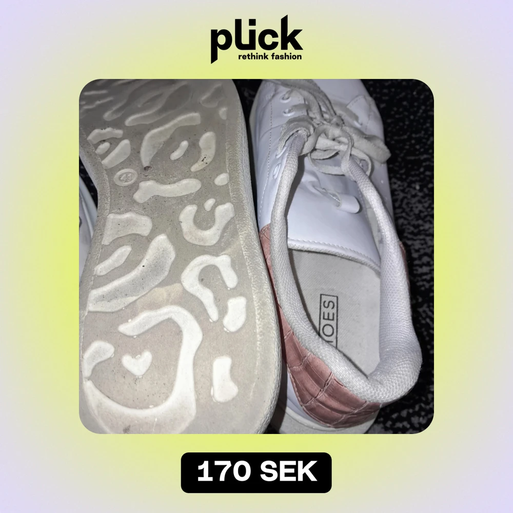 Säljer ett par vita sneakers från M Shoes i bra skick. De har snygga rosa detaljer på hälen och klassisk snörning. Perfekta för vardagsbruk och ger en stilren look. Sulan har ett unikt mönster som ger bra grepp.