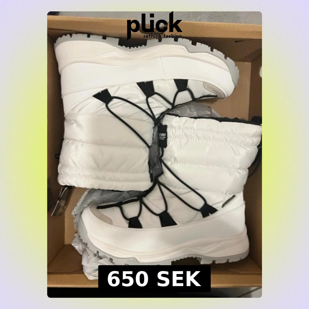 Säljer ett par vita vinterstövlar från Icepeak, modell Ajaccio MS. Stövlarna har en quiltad, syntetisk ovandel med svarta snörningsdetaljer och grov platt sula. Insidan är svart och de har dragflik baktill. Perfekta för kalla dagar.