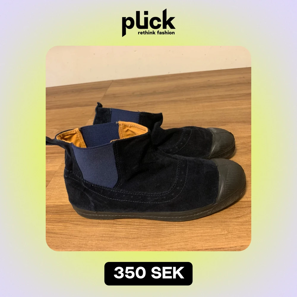 Säljer ett par snygga svarta Bensimon boots i mocka med elastiska paneler på sidorna för enkel på- och avtagning. De har en robust gummisula och tå, vilket gör dem perfekta för höst och vinter. Insidan är fodrad i en kontrasterande orange färg som ger en cool touch. Perfekta för både vardag och lite mer uppklädda tillfällen! Använda 1 gång