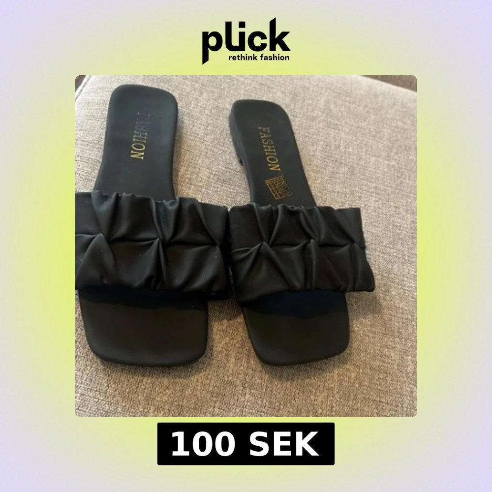 Stilrena svarta sandaler med bred quiltad rem och fyrkantig tå. Snygg och trendig design med platt sula, perfekt för varma dagar. Tillverkade i syntetmaterial och passar dig som gillar en modern look.