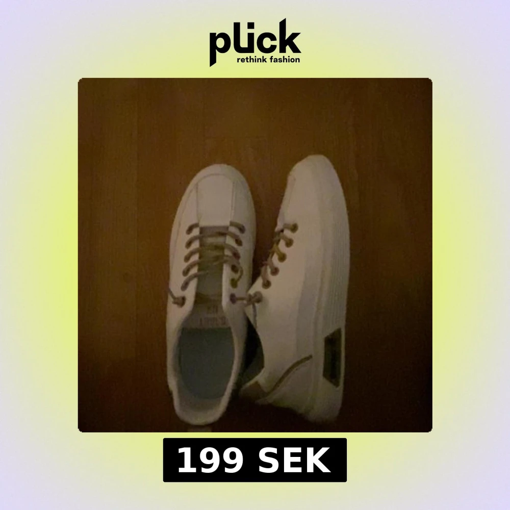 Säljer ett par stilrena vita sneakers med platt sula och snörning. Skorna har en klassisk design med rund tå och diskreta detaljer. Perfekta för dig som gillar en clean och enkel look.