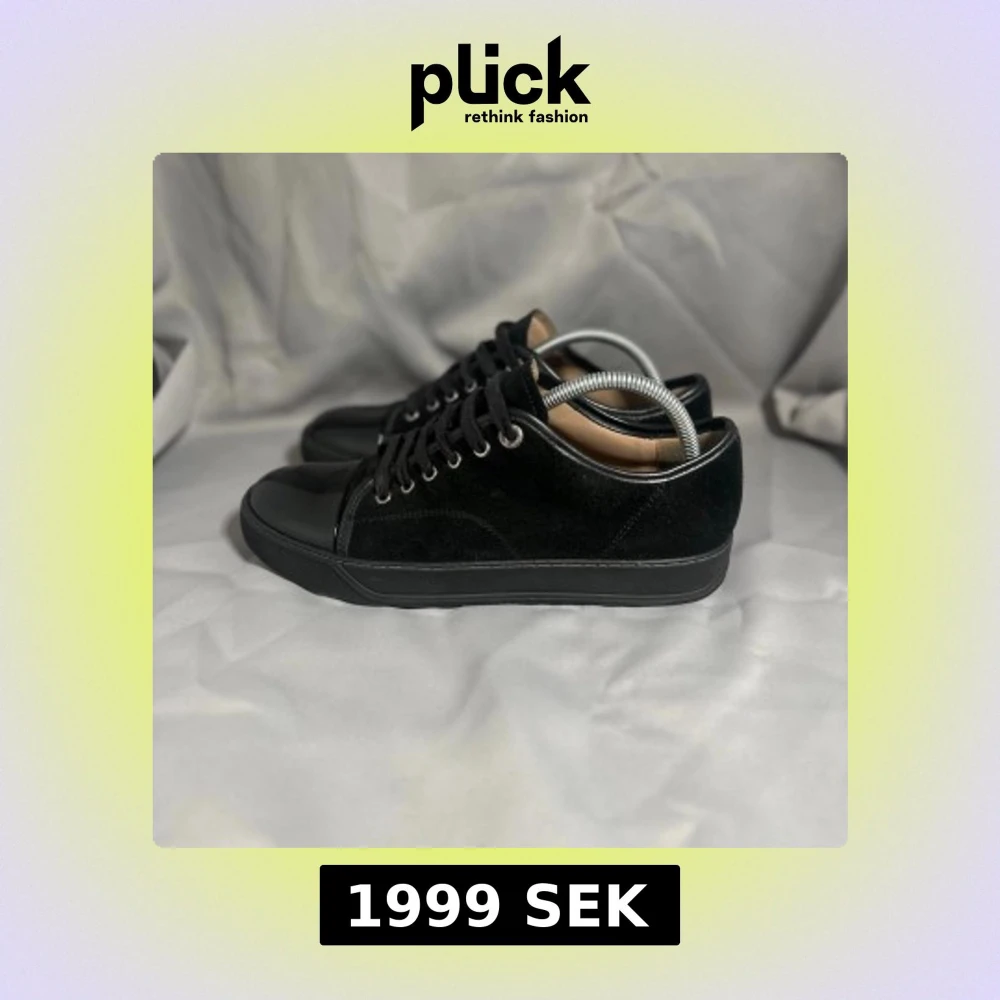 Snygga svarta sneakers med ovandel i mjuk mocka och detaljer i blankt lack på tå och häl. Skorna har rund tå, platt sula och snörning med metallöglor. Perfekt för dig som gillar stilrena och moderna skor med lite extra edge.