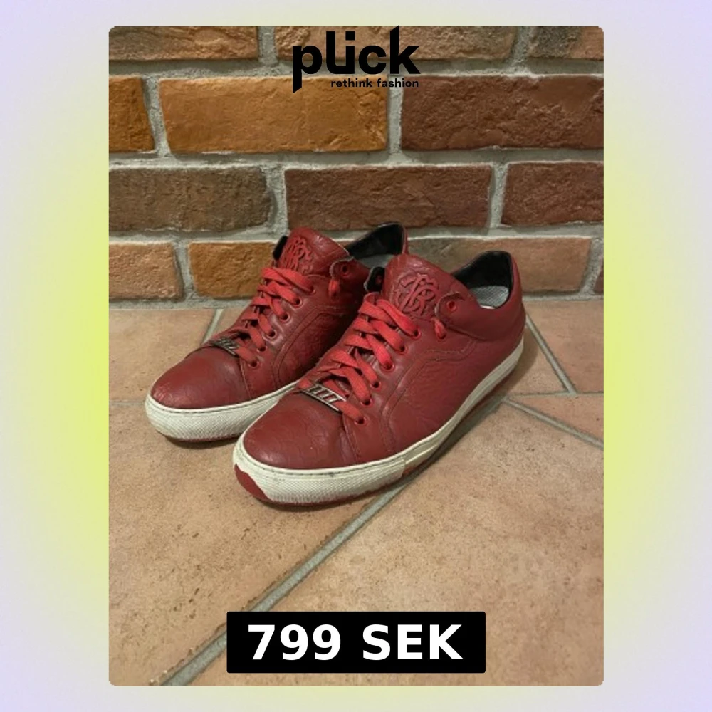 Röda Roberto Cavalli med en unik design där den röda sulans färg sprids up långs sidorna. Matchande röd Roberto Cavalli logga på plösen i metall.