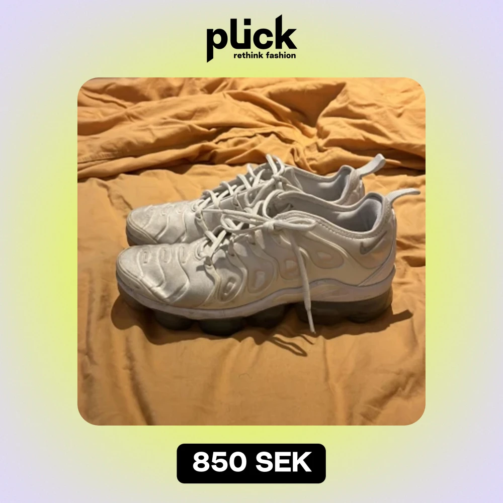 Ett par vita Nike vapor Max som bara står hemma. Skick 7/10 väldigt fina skor. Men dem har tyvärr blivit för små Storlek 41 Pris kan diskuteras vid snabb affär