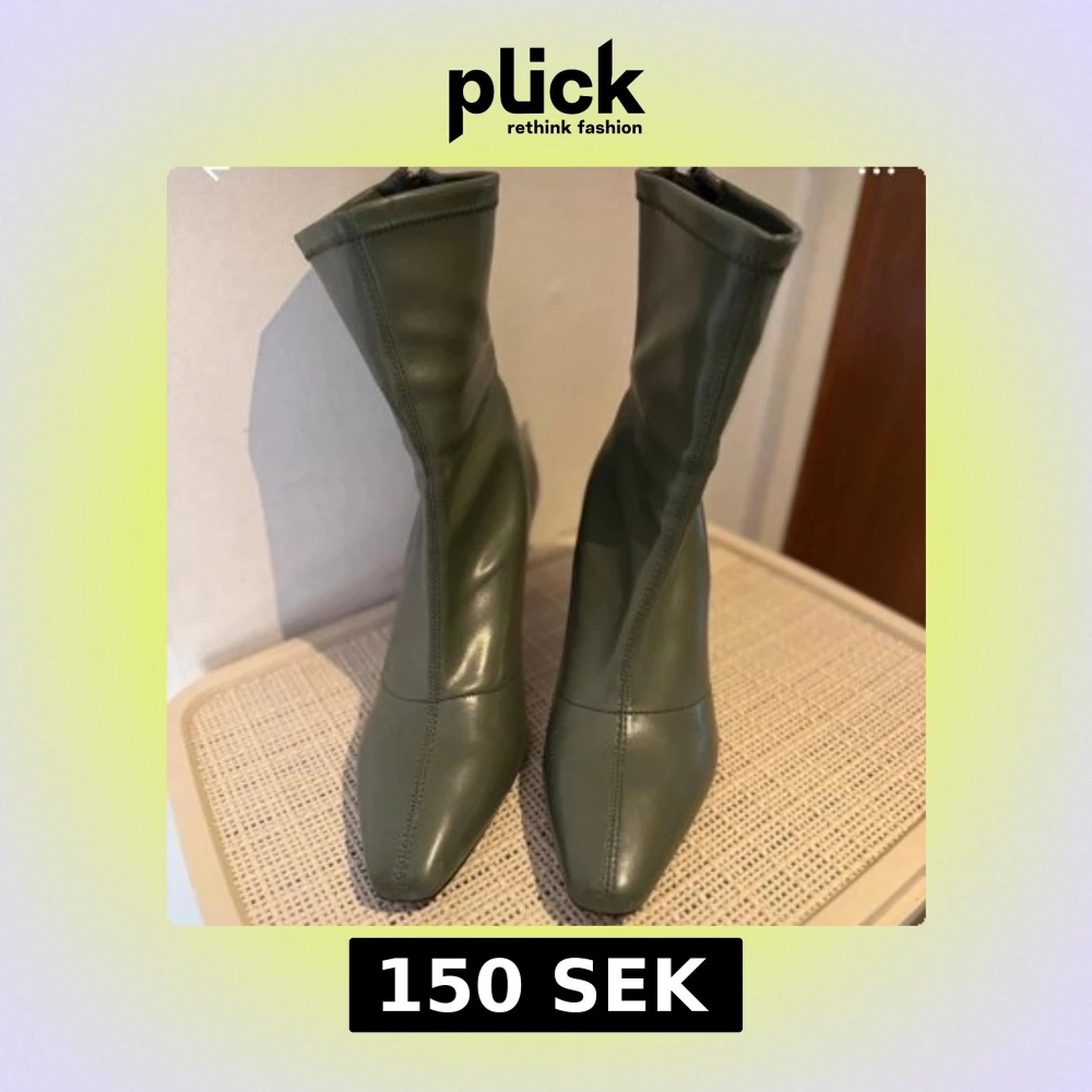 Snygga gröna stövletter i skinnimitation med spetsig tå och smal klack. Skorna har dragkedja baktill och en stilren, minimalistisk design som ger en cool vibe till outfiten. Perfekta för dig som vill sticka ut med ett par trendiga boots.