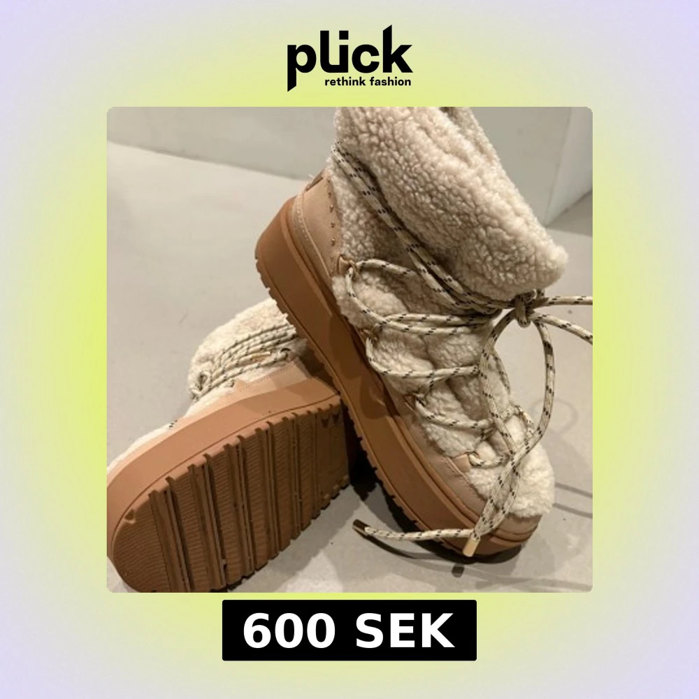 Bershka beige vinterboots med snörning