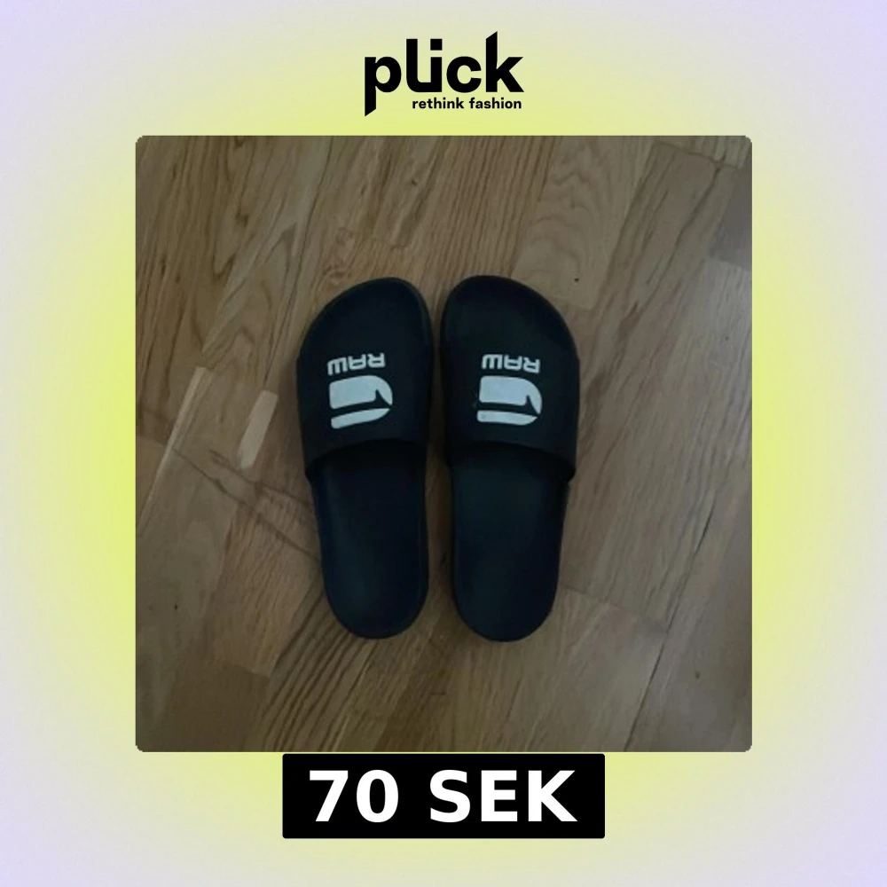 Svarta sandaler från RAW med vit logga på ovandelen. Klassisk slip-on modell med bred rem över foten och platt sula. Perfekta för sommaren eller att chilla hemma. Tillverkade i syntetmaterial för enkel rengöring