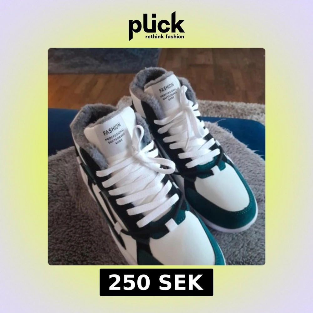 Snygga sneakers i vitt och grönt med grått foder. Skorna har snörning och en robust sula för extra komfort. Perfekta för kyligare dagar med sitt varma foder.