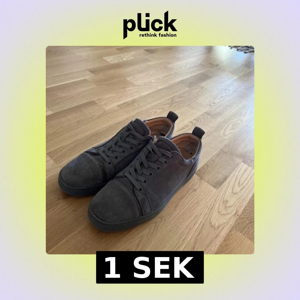 Snygga grå sneakers med en unik röd sula. Skorna har snörning och en rund tå, vilket ger en klassisk look. Perfekta för en stilren vardagsstil.