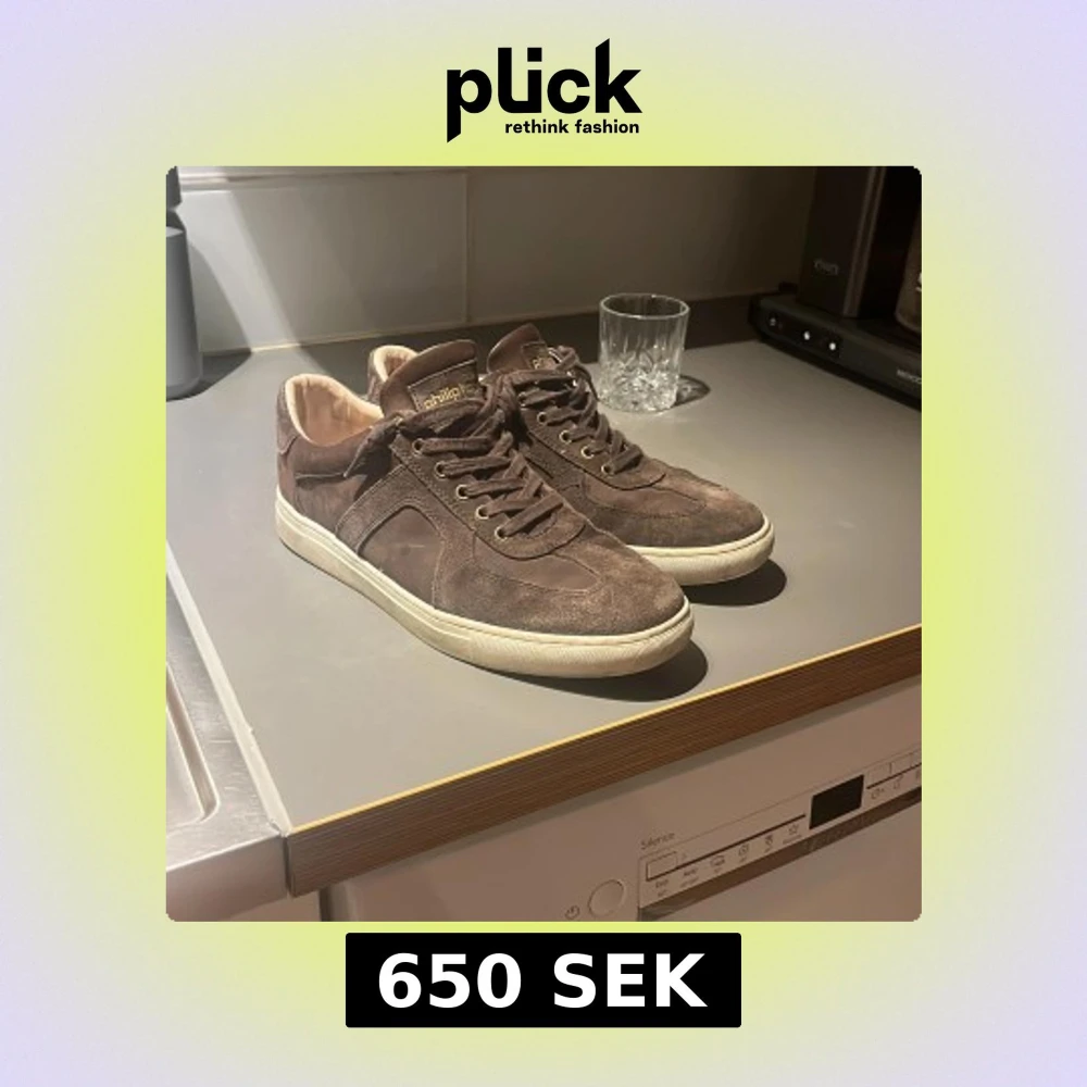 Snygga bruna GATs från Philip Hog i mocka med beige innersula och vita gummisulor. Skorna har klassisk snörning och diskreta gulddetaljer på plösen. Perfekta för dig som gillar stilrena och bekväma sneakers med en touch av premiumkänsla.
