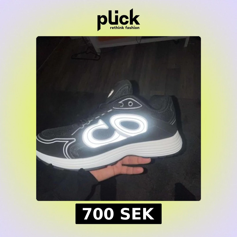 Svarta sneakers med vit, tjock sula och stora reflekterande CD-detaljer på sidorna. Ovandelen är i mesh och syntet, med snörning och sportig vibe. Perfekta för dig som vill sticka ut med coola detaljer och bekväm passform.