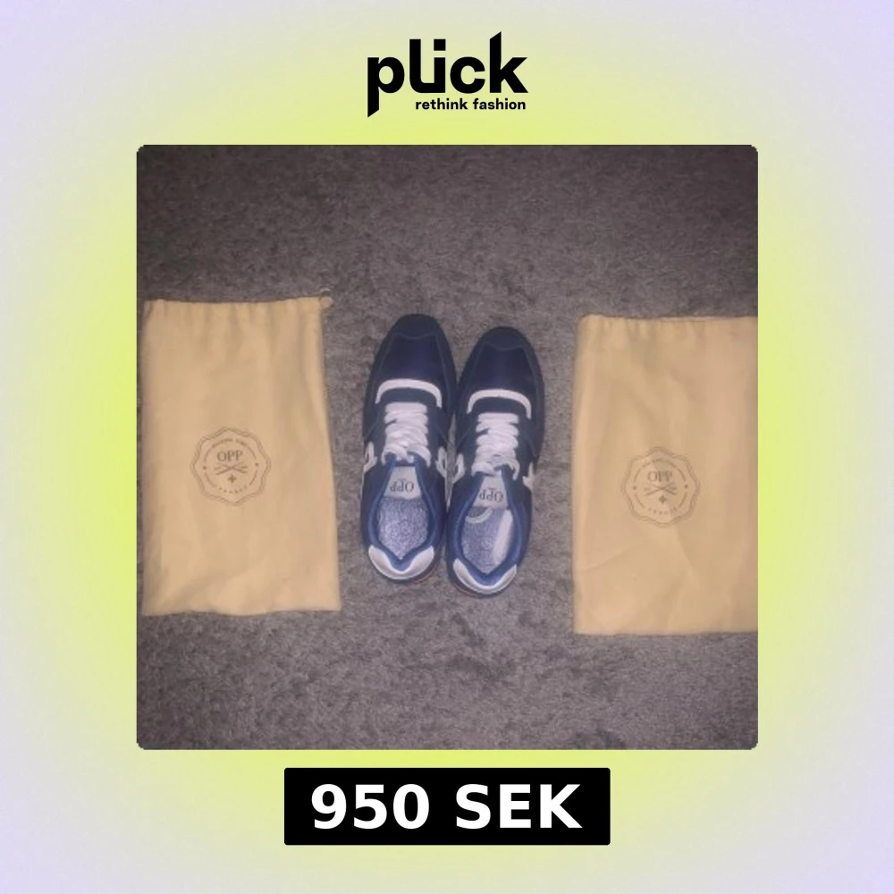 Marinblå sneakers av märket: OPP France. Nypris: 1200kr. Skorna är helt oanvända. Du får endast med dustbag, ej låda.