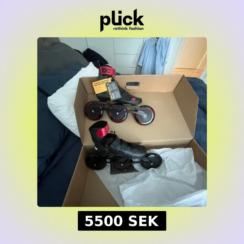 Säljer ett par K2 Redline 125 rullskridskor i svart med röda detaljer. Skorna har tre stora hjul, kardborreband och spänne för extra stöd. Perfekta för marathon och långdistansåkning. Unisexmodell med sportig design och robust konstruktion.