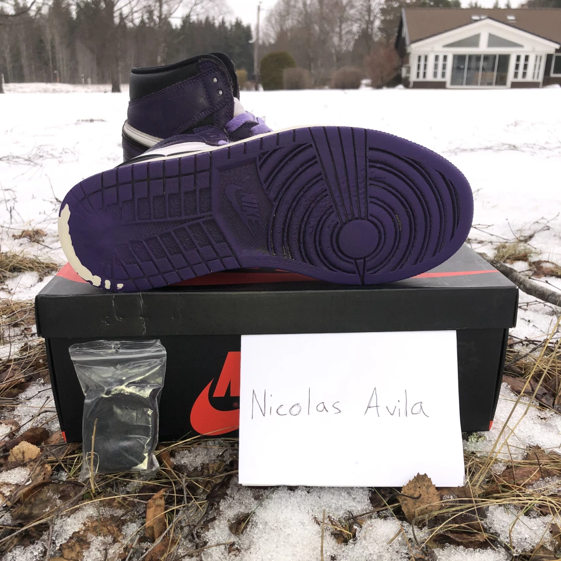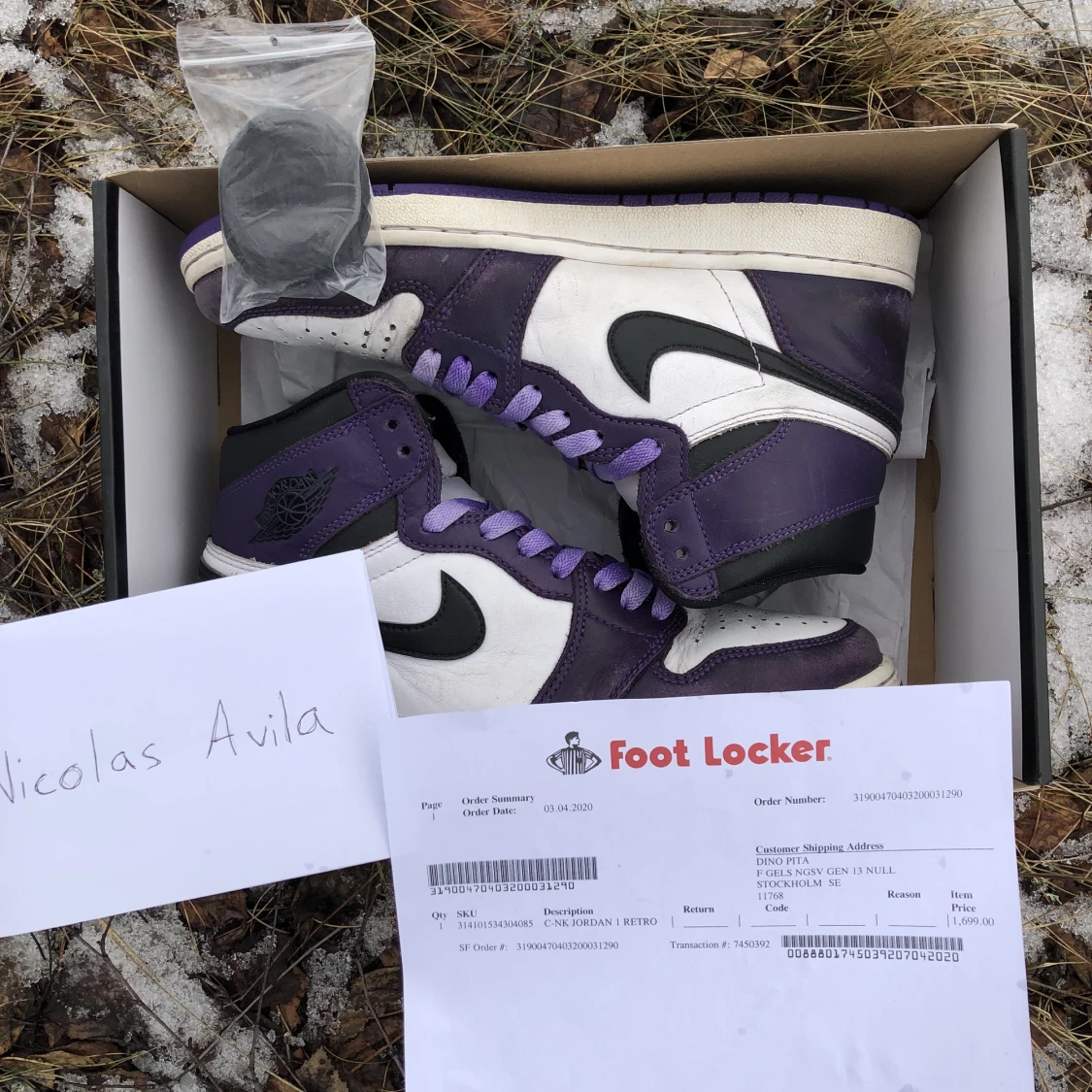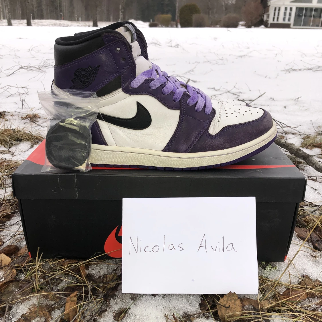 Säljer ett par Jordan 1 High Court Purple i fint skick! Box, svarta (lite slitna) och lila snören ingår samt kvitto från footlocker! Pris kan diskuteras vid snabb affär! För fler frågor så är det bara att skriva i DM!