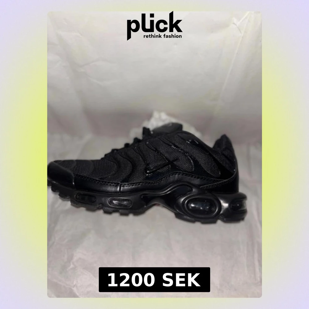 Säljer ett par svarta Nike TN (Air Max Plus) i nyskick. Skorna är helt oanvända och kommer med originalkartong, precis som vid köp i butik. ✔️ Oanvända – aldrig provade utomhus ✔️ Originalkartong ingår ✔️ Snygg och tidlös färg som passar till allt Perfekta för dig som vill ha ett par fräscha TN utan att betala nypris. Kan skickas eller mötas upp enligt överenskommelse. Hör av dig vid frågor eller seriöst intresse!