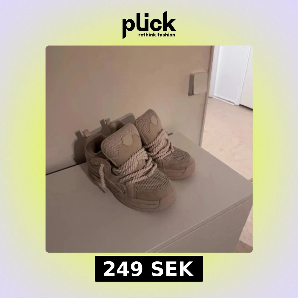 Säljer ett par beige chunky sneakers med riktigt grova snören och meshdetaljer. Skorna har en kraftig sula och coola paneler i mocka och textil. Perfekta för dig som gillar statement-skor och vill sticka ut med din stil.