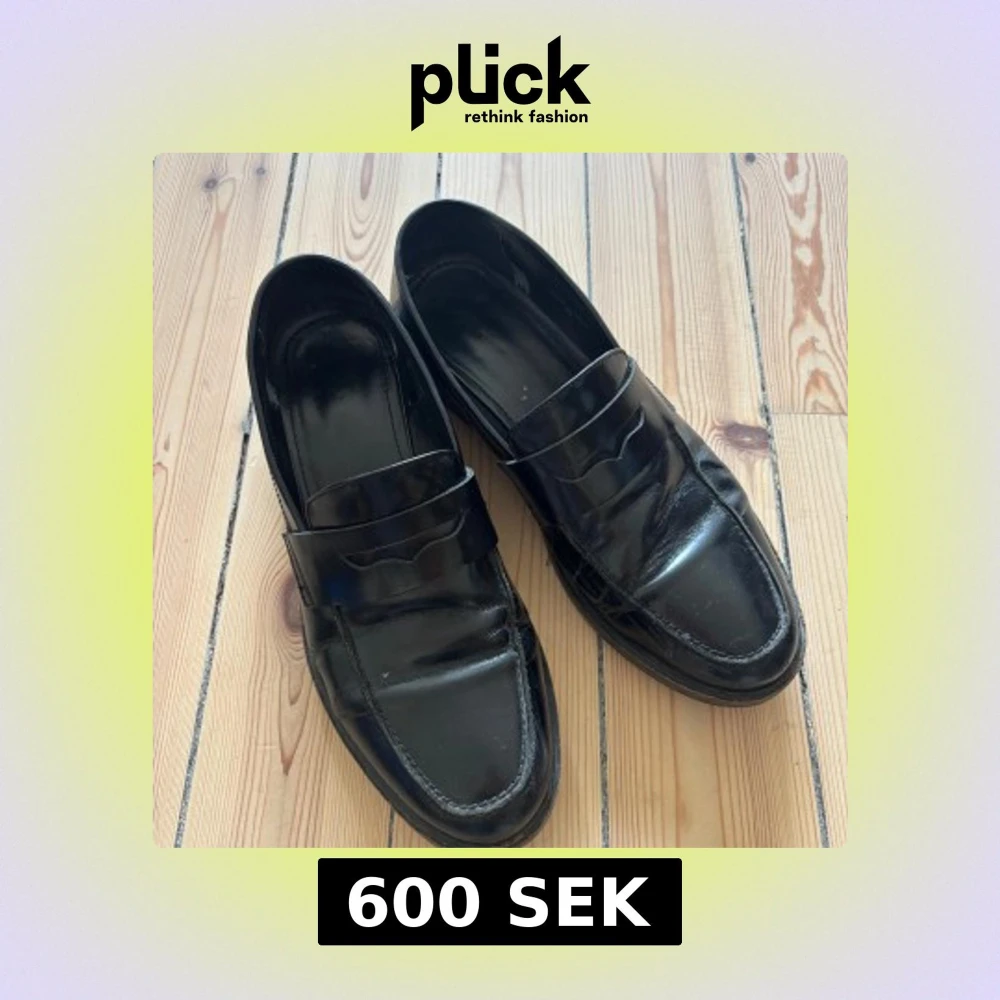 Snygga svarta loafers i glansigt skinn med klassisk penny loafer-design. Skorna har rund tå, platt sula och stilren look som passar till både jeans och kostymbyxor. Perfekta för dig som gillar tidlös och clean stil.