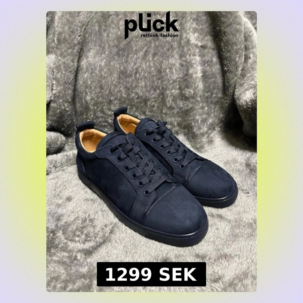 Snygga mörkblåa sneakers med röd sula, storlek 43, aldrig använda, kommer inte med box, skriv vid frågor!