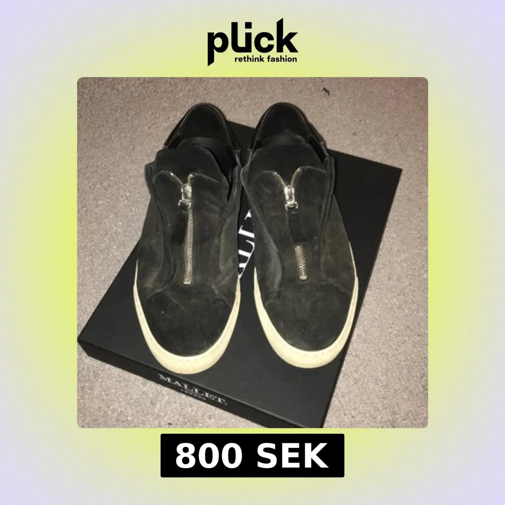 Snygga svarta sneakers från Arigato med dragkedja framtill. Skorna har en stilren design med en vit sula som kontrasterar mot det svarta mockamaterialet. Perfekta för en casual look. (Säljs inte mer)