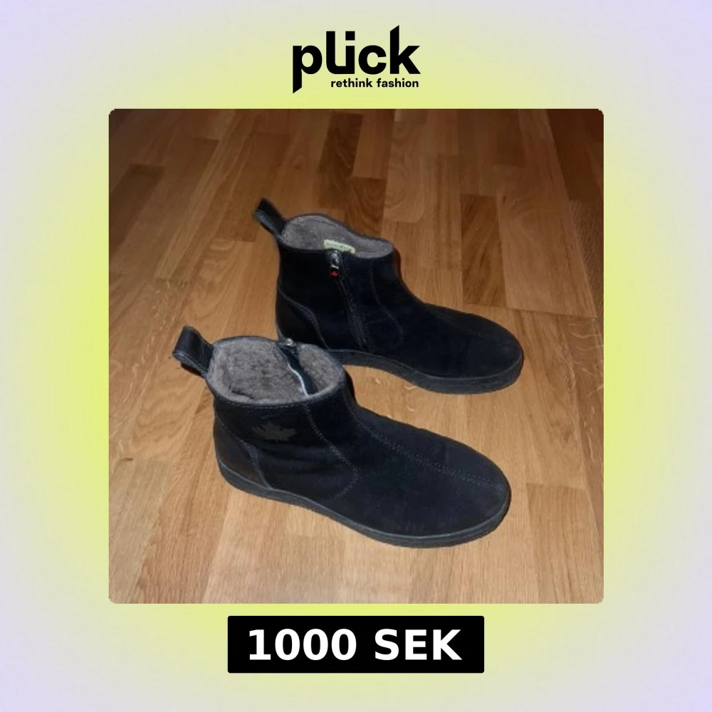 Svarta boots i mocka med mjukt, beige foder och dragkedja på sidan. Skorna har en platt sula med grovt mönster och en liten ögla baktill för enkel påtagning. Perfekta för kalla dagar när du vill hålla fötterna varma och bekväma.