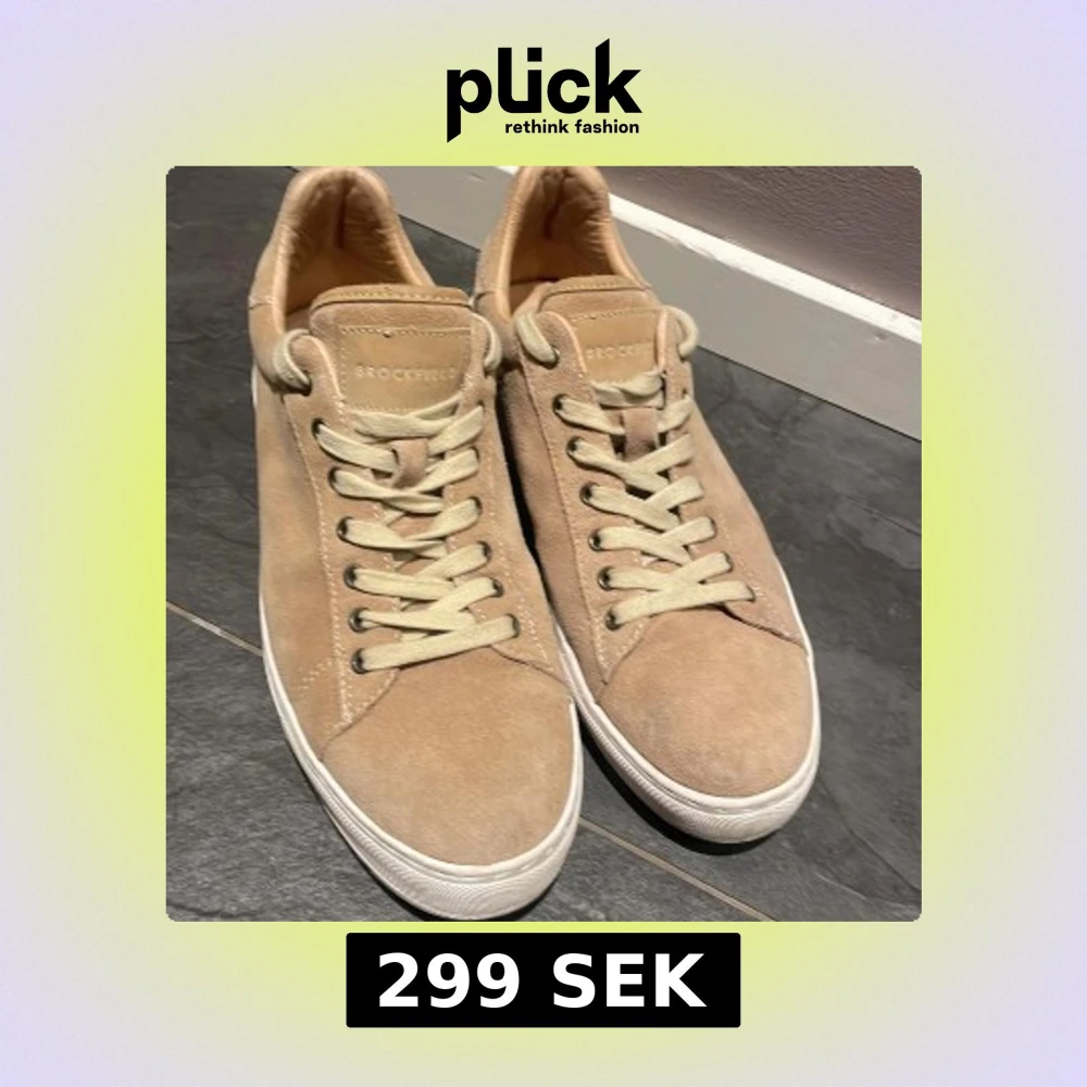 Snygga beige sneakers från Brockfield i mjuk mocka med vita snören och vit platt sula. Klassisk rund tå och stilren design som passar till jeans eller shorts. Perfekt för dig som gillar neutrala färger och enkel stil.