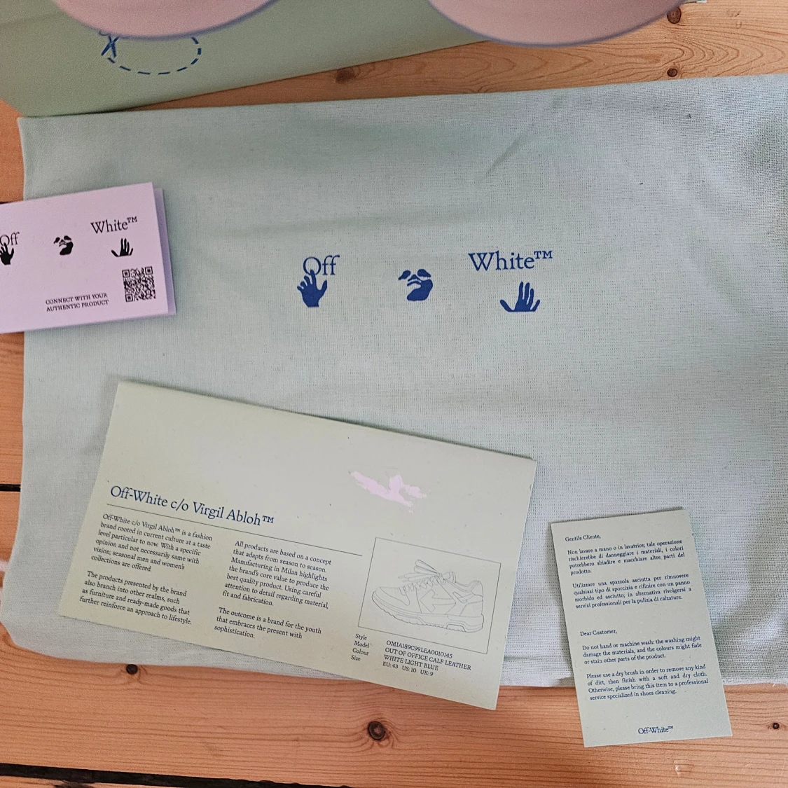 Oanvända / deadstock. Allt OG. Storlek 43. Köpta på south soles, kvitto finns! Det medföljer en off-white påse som.