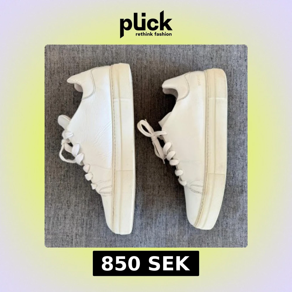 Snygga vita sneakers från Pavement med klassisk rund tå och platt sula. Skorna är tillverkade i mjukt skinn och har vita snören. Minimalistisk design med diskret logga på plösen. Perfekta för dig som gillar cleana och stilrena sneakers.