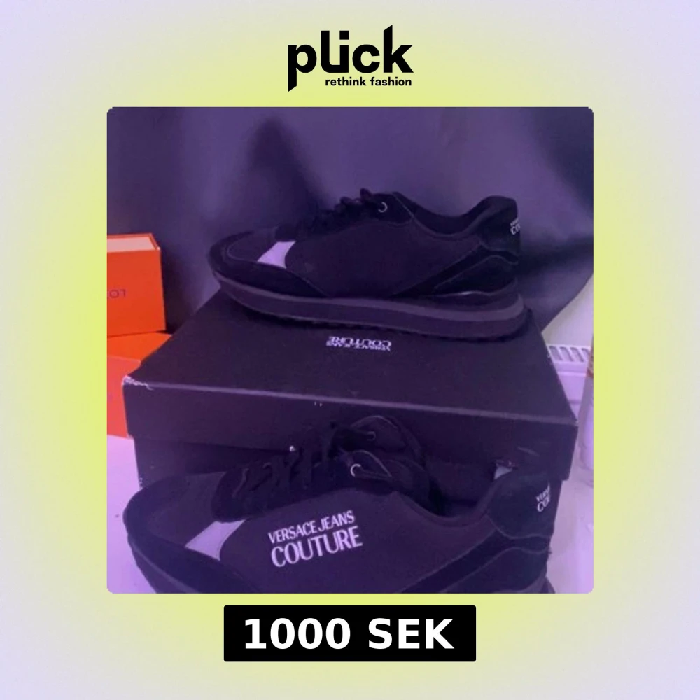 Snygga svarta sneakers från Versace Jeans Couture med vit logga på sidan. Skorna har en stilren design med snörning och en bekväm sula. Perfekta för en trendig look.