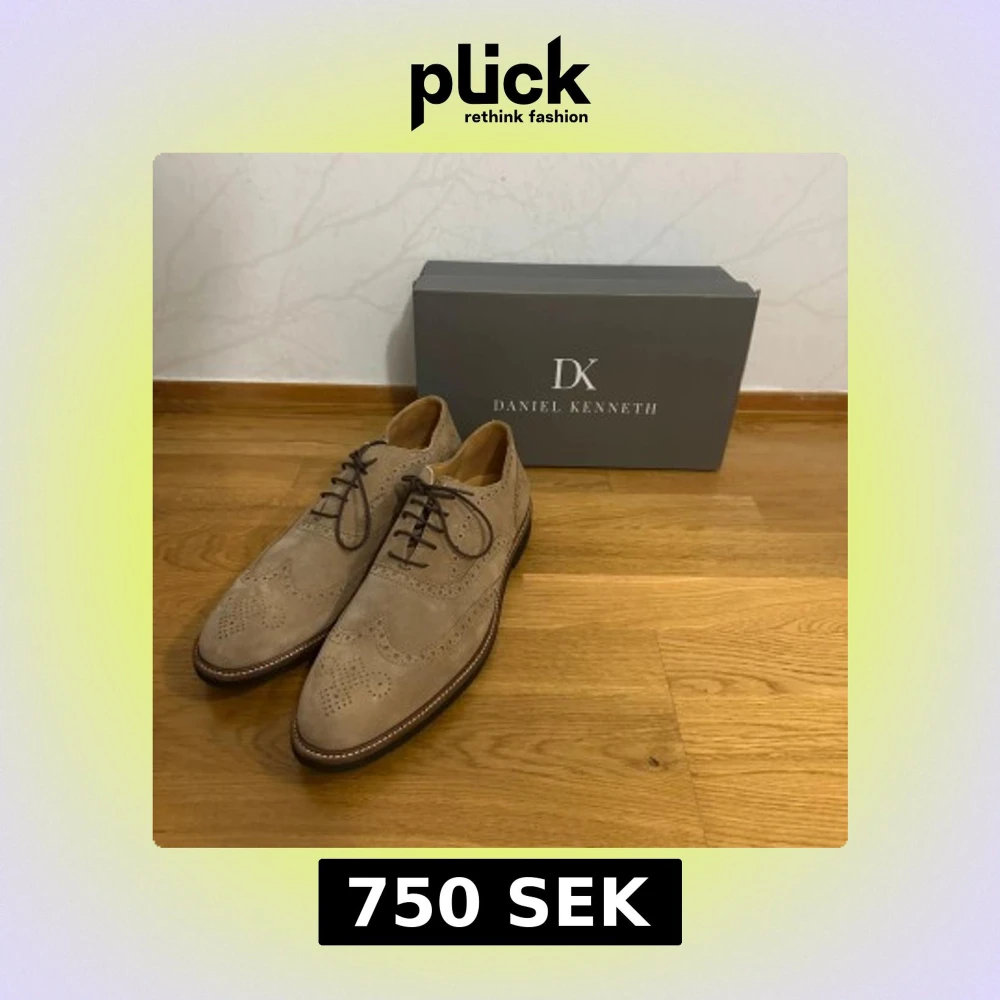 Snygga beige mockaskor från Daniel Kenneth med klassiskt broguemönster och rund tå. Skorna har mörka snören och en platt sula med kontrastsöm runt om. Perfekta för dig som vill ha en dressad men ändå chill look.