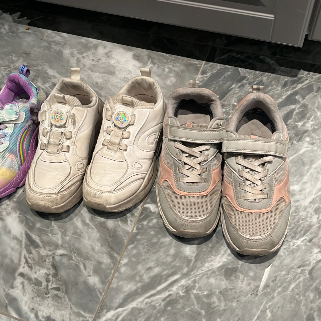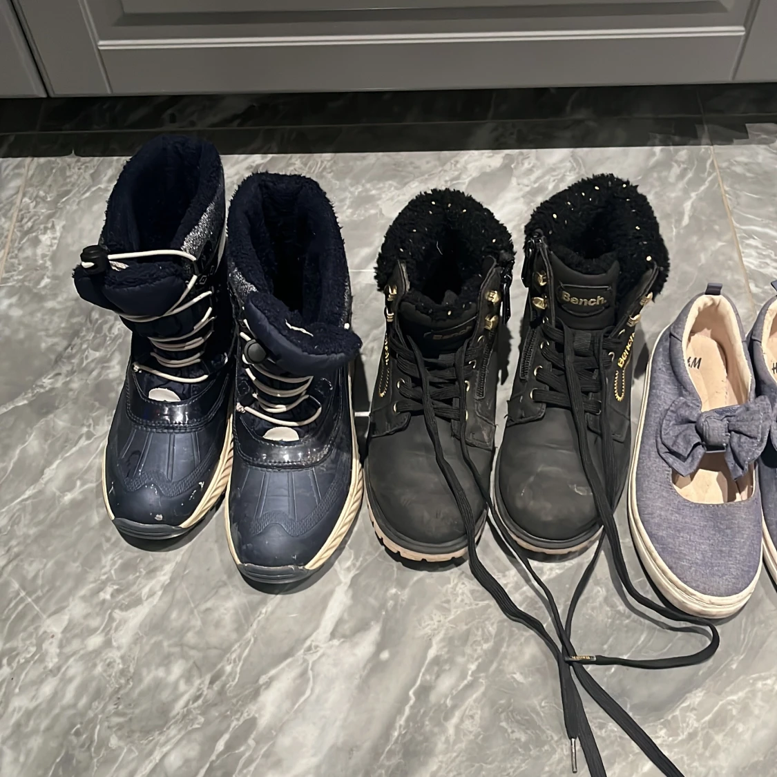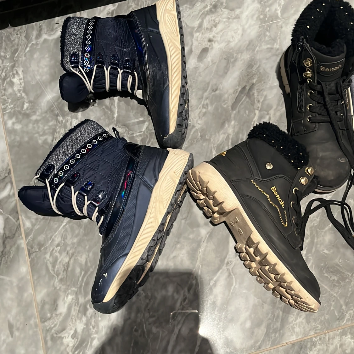 Mycket fina och praktiska skor. Storleken är olika på de. Om ni är intresserade av ett par så kan ni skriva och fråga vilken storlek det är på vilken av de. Jag börjar med att ha priset 150kr så kan det även diksuteras
