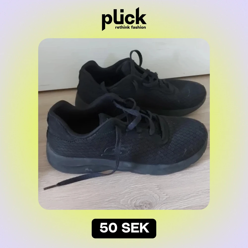 Säljer ett par svarta sneakers från Skechers i storlek 38. Skorna är tillverkade av textil med en EVA-sula och har snörning framtill. De är i bra skick och perfekta för vardagsbruk eller träning.