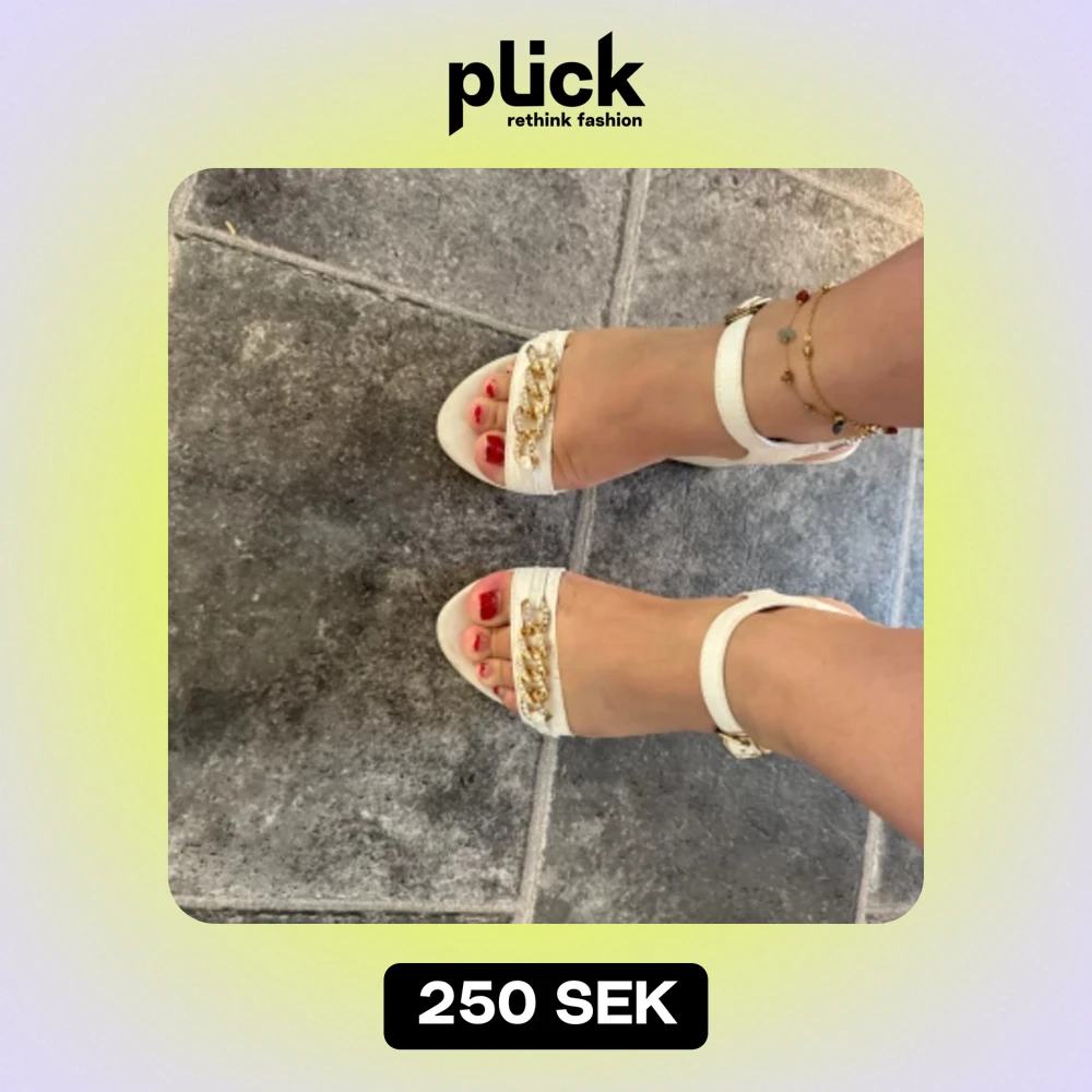 Säljer ett par snygga vita sandaler från Romerro i storlek 36. De har en elegant guldkedja som detalj och en bekväm klack. ! De är i väldigt bra skick och redo för dig att passa på o köpa 💖🌸🌸