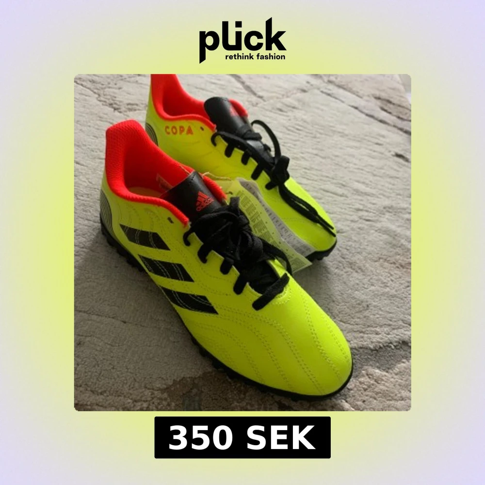 Säljer ett par Adidas Copa fotbollsskor i neon-gul färg med svarta detaljer. Helt nya och oanvända i original förpackning med prislapp på