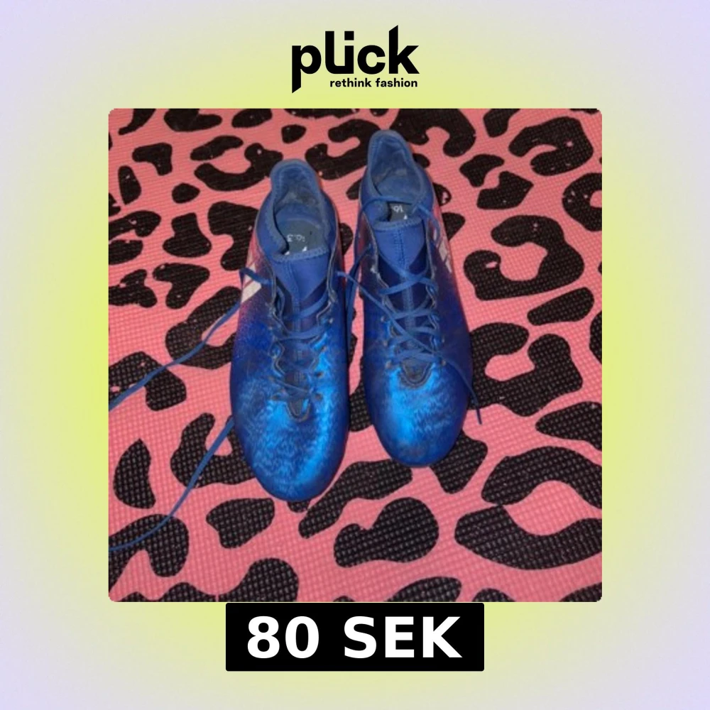 Snygga blå fotbollsskor med snörning och ett coolt mönster. Perfekta för fotbollsplanen och ger bra grepp och kontroll. Skorna har en modern design och är bekväma att bära under långa matcher.