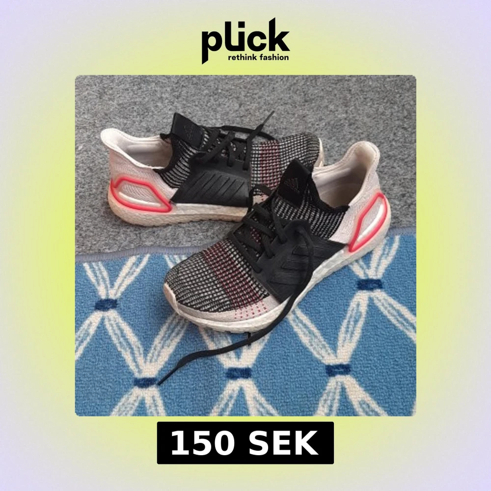 Säljer ett par Adidas sneakers med stickad ovandel i svart, vitt och röda detaljer. Skorna har snörning, vit sula och svarta tre ränder på sidan. Perfekta för träning eller vardag. skoSkor är mycket lätta och bekväma i mycket bra skick.