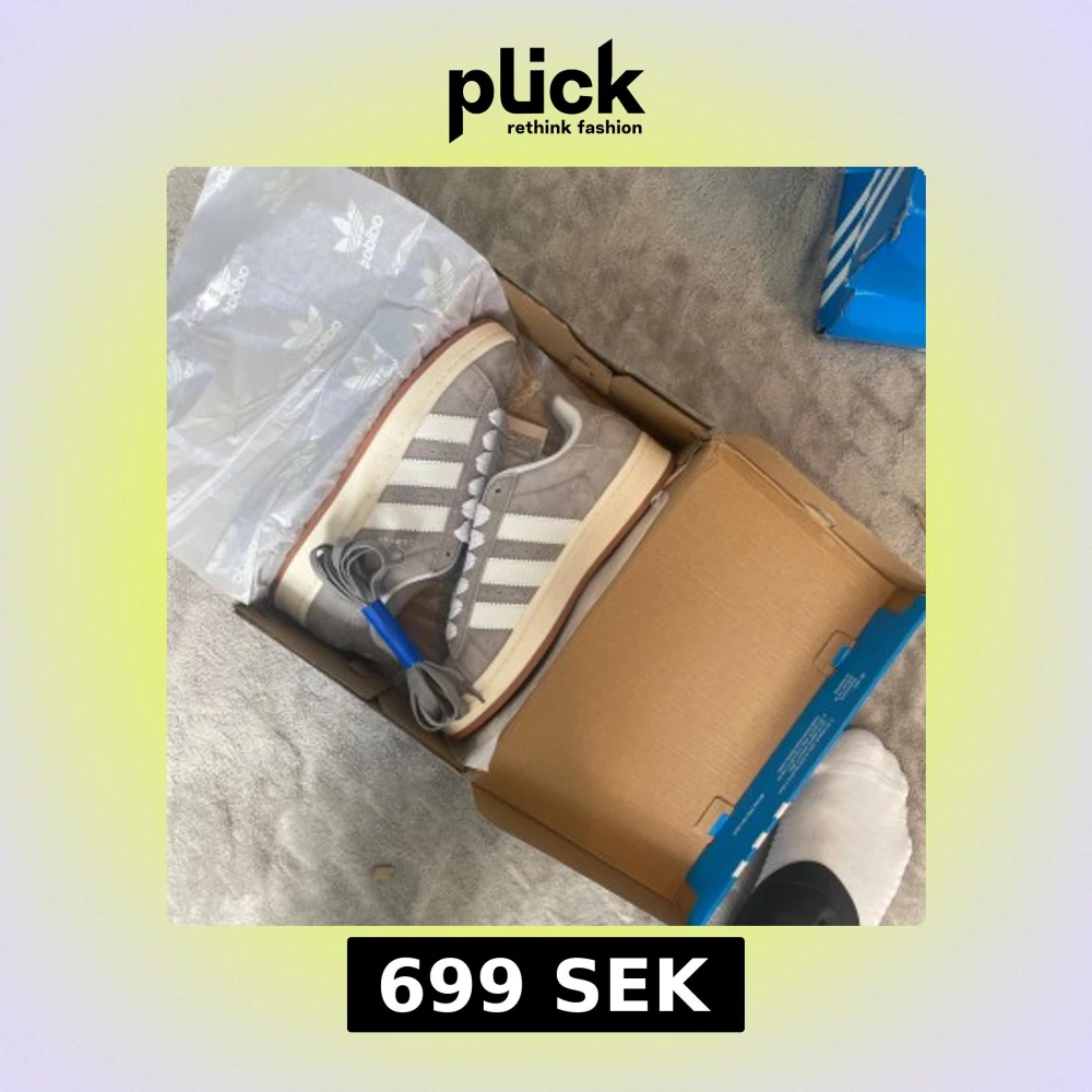 𝗔𝗱𝗶𝗱𝗮𝘀 𝗖𝗮𝗺𝗽𝘂𝘀 00 – 𝗴𝗿å, 𝘀𝘁𝗿𝗹 38 Helt nya och oanvända sneakers. Boxen är delvis skadad då de köpts upp från ett lager, därför säljs de billigare. Skorna är i perfekt skick.