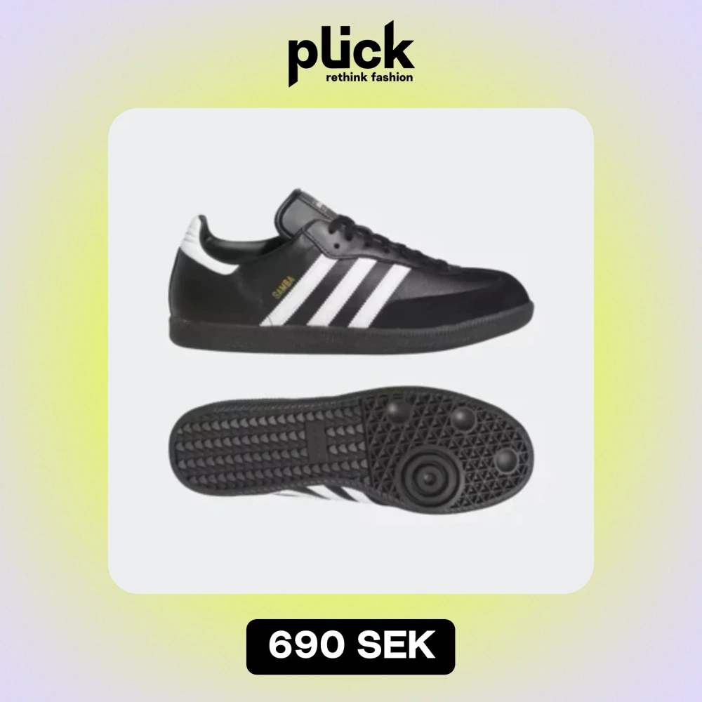 Säljer mina svarta sambas, storlek 40 men små i storleken så passar perfekt på mig som har strl 39 normalt. Bra skick förutom att ena hälen är lite intrampad vilket syns på bilden, dock inget man tänker på när man använder skorna!