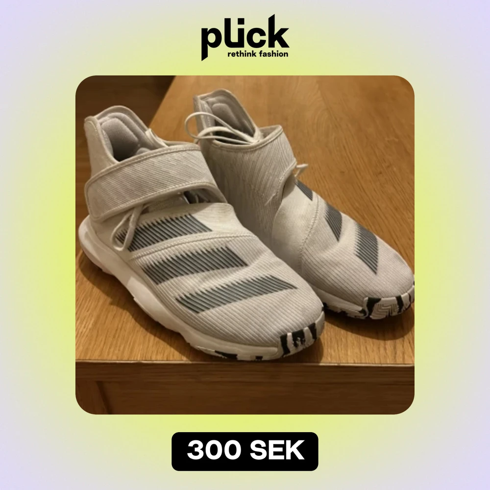 Ett par basket skor av märket adidas de har en liten fläck men går förmodligen att tvätta bort jag har inte försökt då jag växte ur de.