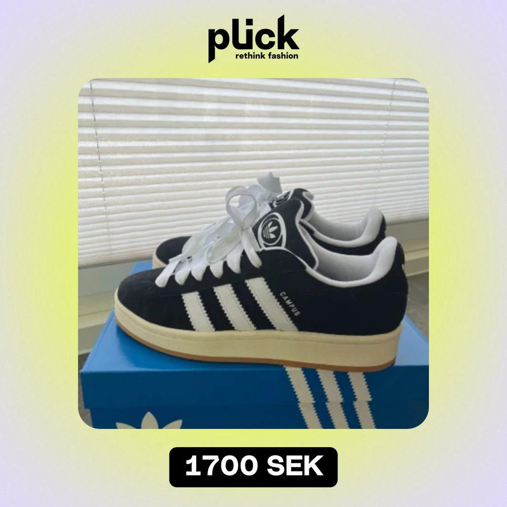 Helt nya adidas campus 00 svarta i storlek 38 2/3, aldrig använda köptes för 2/3 dagar sedan, kvittot finns :). Tyvärr så var de försmå för mig och min strl är slutsåld. Nytt pris: 2200kr